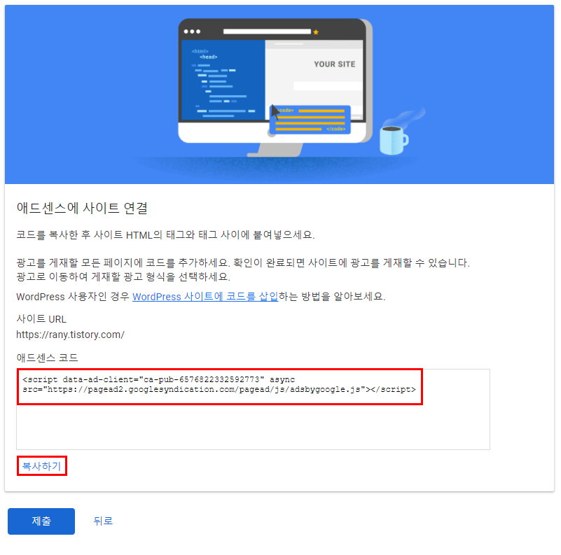 3. 애드센스 코드를 복사